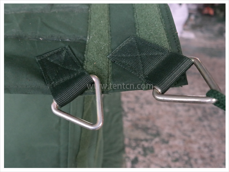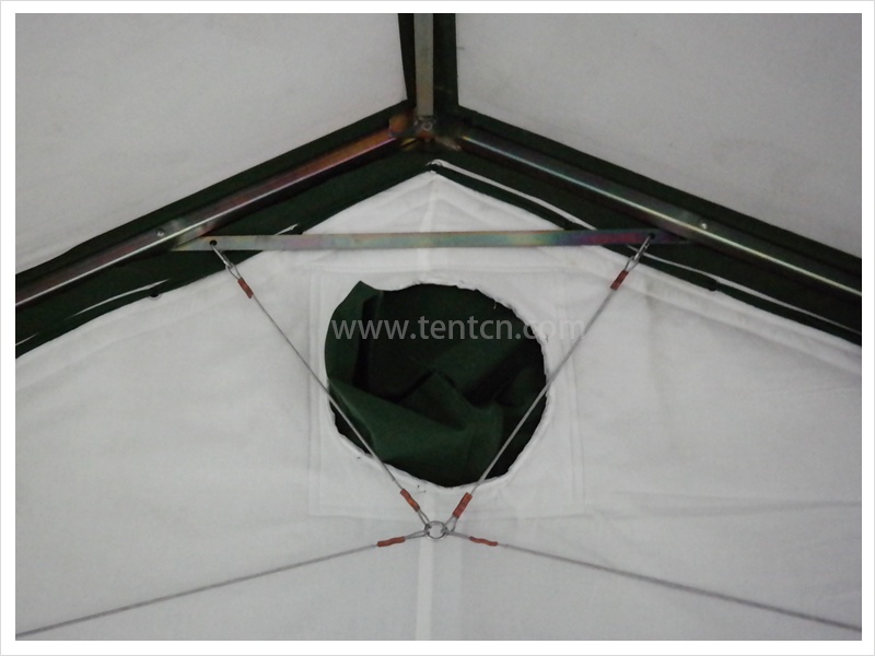 帳篷為框架式結(jié)構(gòu),結(jié)構(gòu)簡單、質(zhì)量輕。具有縱向組合功能,可擴大使用面積。立柱插入斜梁之中,有效減少了包裝件數(shù)和體積。架設、撤收方便,機動性好,是現(xiàn)下野戰(zhàn)部隊應用最為廣泛的野外帳篷之一。