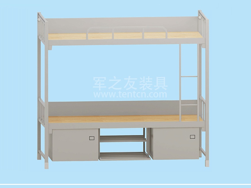 產(chǎn)品簡介:制式營具依據(jù)《中國人民解放軍制式營具圖冊及技術(shù)標準》制作,功能設(shè)計突出體現(xiàn)了人性化理念,床架兩側(cè)專門設(shè)置整體抽拉式蚊帳桿、多功能折疊寫字椅專用插槽,床下設(shè)計了戰(zhàn)士放置頭盔、靴子和行軍背囊等戰(zhàn)備生活物資的柜子,內(nèi)側(cè)增加了防止相互影響休息的隔板。床下柜和物品柜都開設(shè)了對流透氣孔;學(xué)習(xí)桌椅根據(jù)人體工學(xué)原理,采用大面寬、靠背式設(shè)計,坐用舒適度大大提高;通過加厚板材、加固連接、加強工藝,采用先進的聚乙烯改性材料,使營具更加堅固耐用、綠色環(huán)保。
